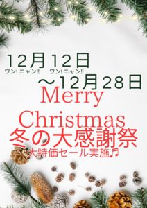 12月12日~♬ワンニャン始動♬ 12月28日まで Xmas大セールを開催‼ 3店舗合同の大幅値引き幸せ特価セールを実施します。 Xmasを新しい家族と過ごしてはいかがですか💛 皆さまの幸せのお手伝いが出来るように この […]