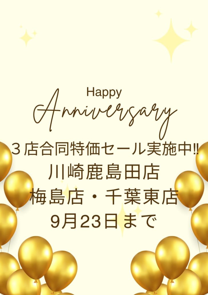 3店舗合同の大幅値引き特価セールを実施します。
