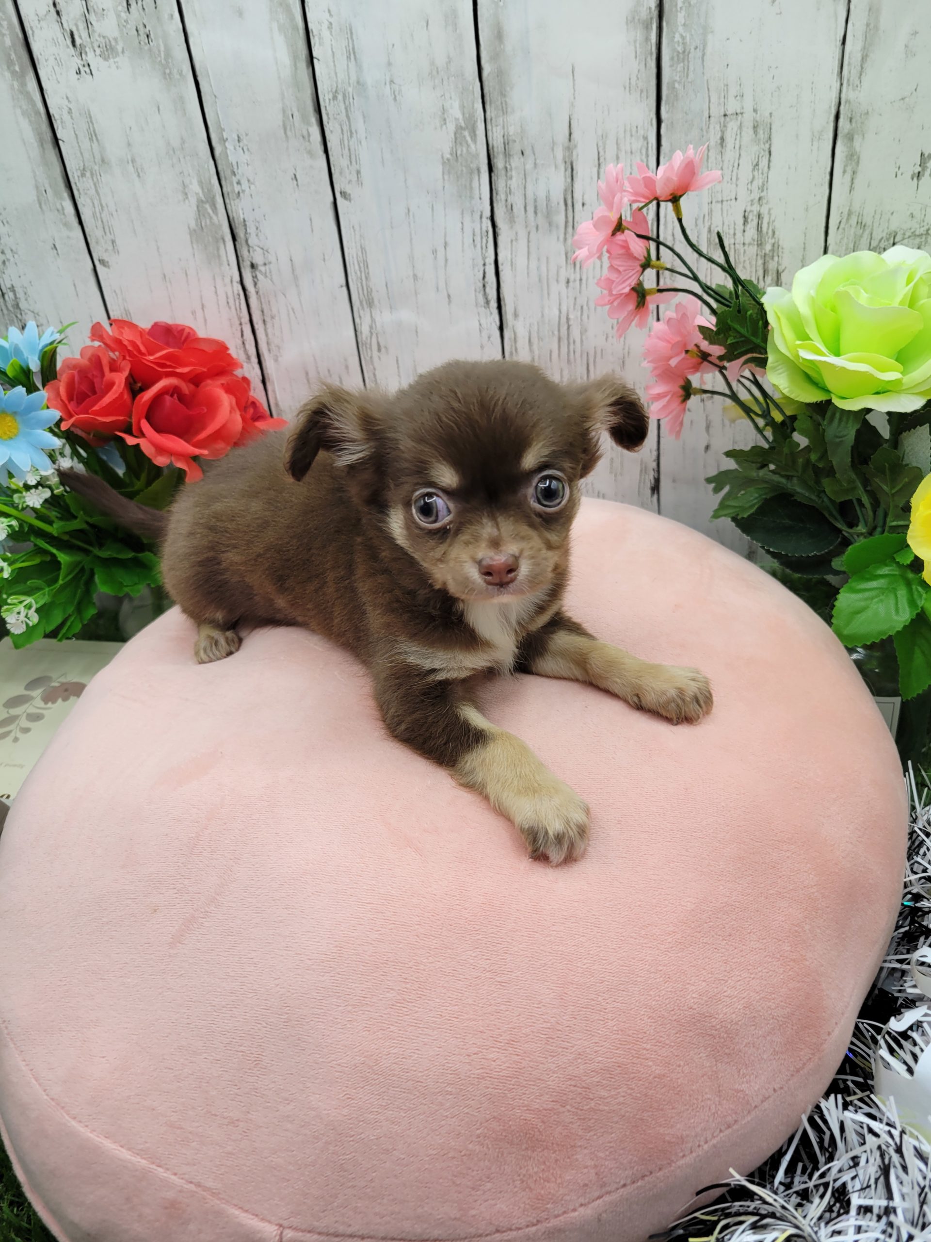 ロングチワワ 2026年2月15日 最終更新日時 : 2026年2月15日 オーナー お誕生日▶︎2025年12月6日性 別▶︎男の子カ ラ ー▶︎チョコレートタン&ホワイト出 身 地▶︎静岡県 価 格▶︎268,000円(税抜)